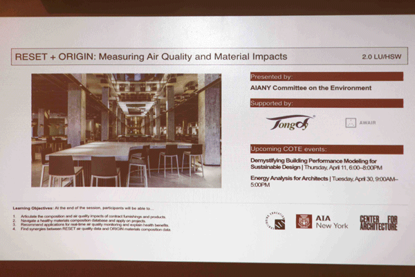 The air quality and material impacts on buildings and architectural spaces via RESET Standard and the ORIGIN Data Hub has been discussed. 04.04.2019, at theMART, Chicago.
